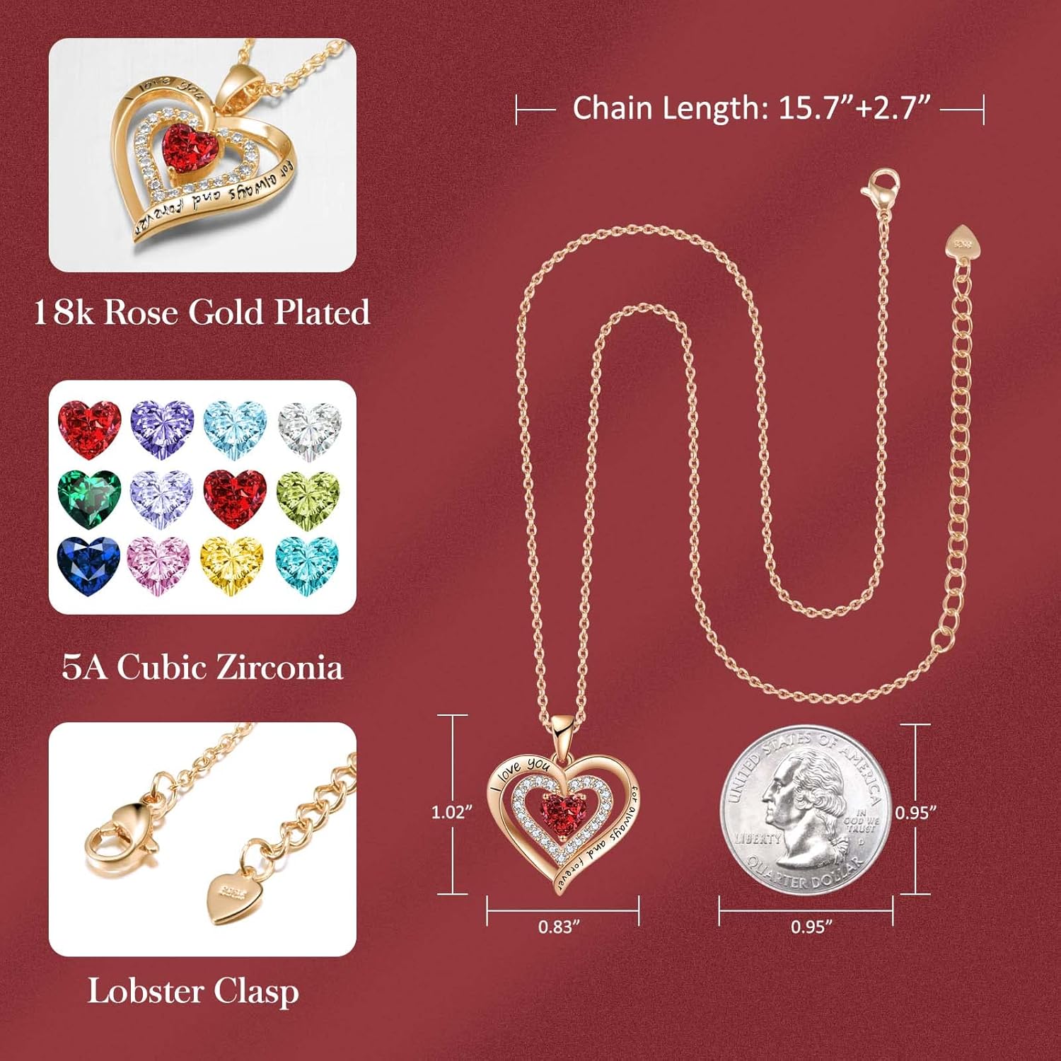 Because of its romantic message and personalized birthstone feature, this necklace makes a wonderful gift for someone special.