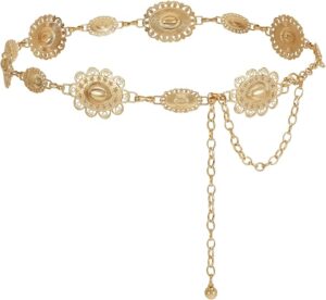 Designed as a boho-inspired chain belt, this accessory features detailed metal conchos, decorative patterns, and a flexible adjustable structure that allows it to complement a wide variety of outfits. Whether paired with dresses, jeans, or skirts, the belt adds a stylish western touch that enhances your overall appearance.